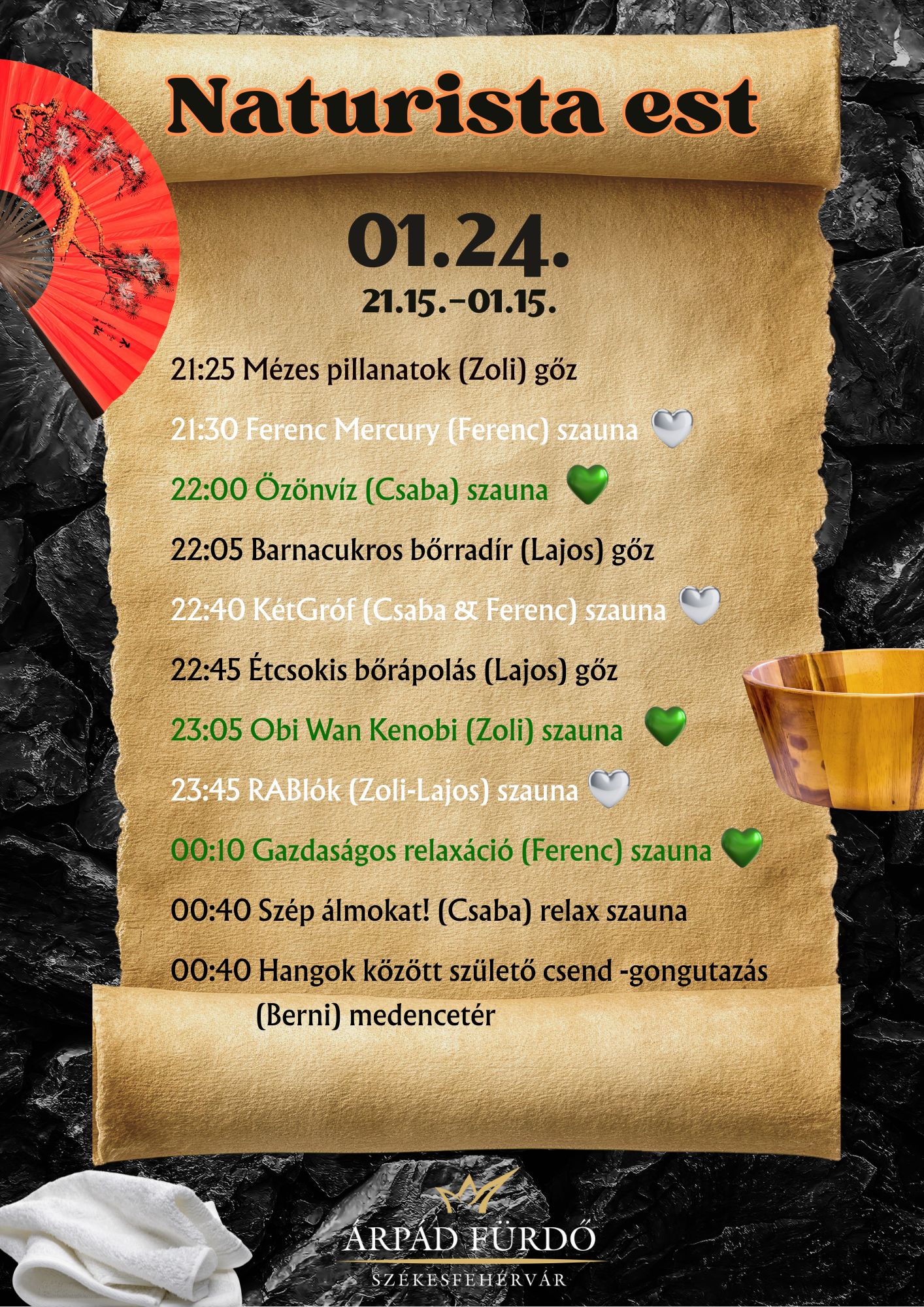 – A fürdőben az est ideje alatt is az Árpád Fürdő Házirendje érvényes!!!