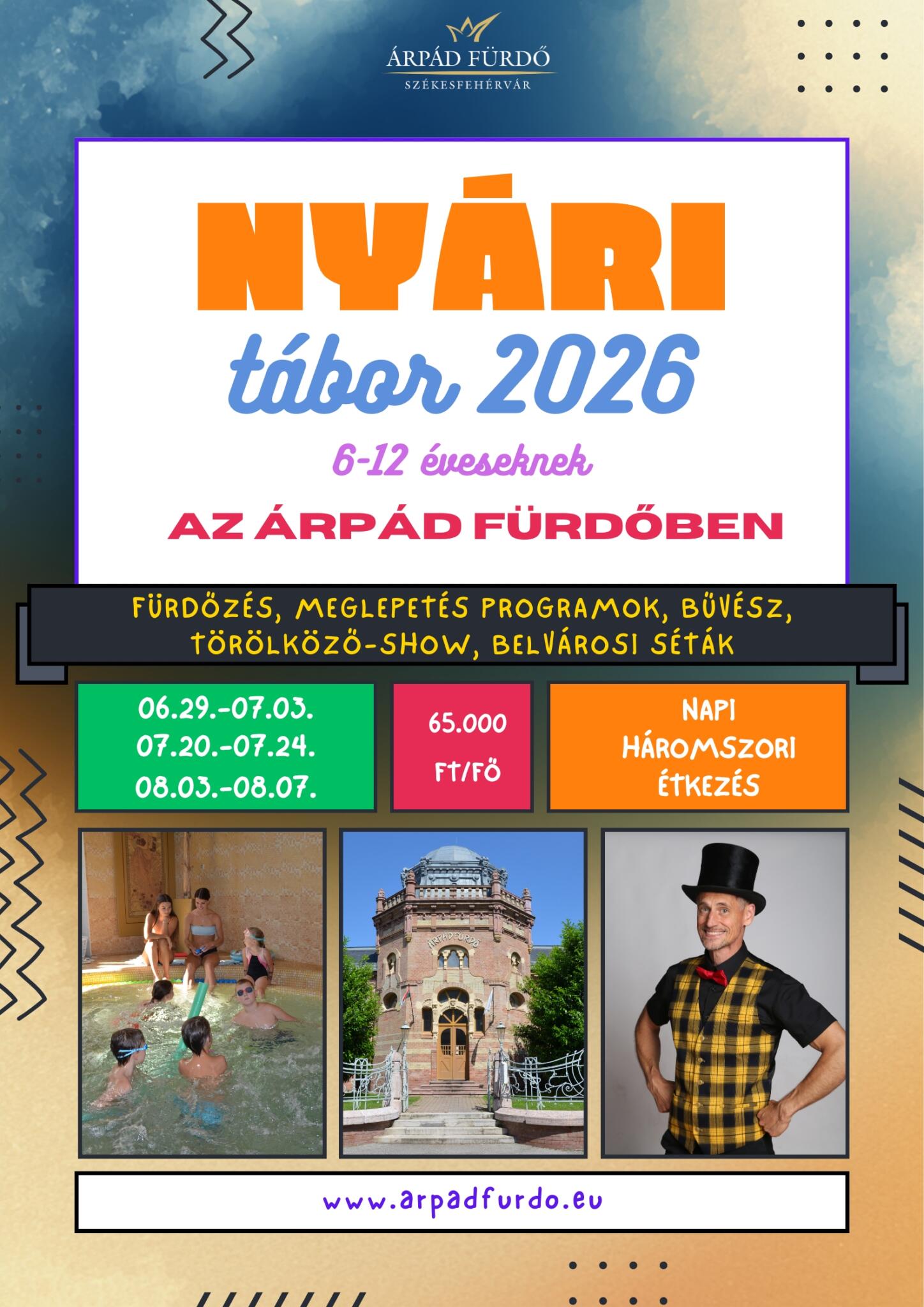 Részvételi díj: 65.000 Ft/fő, testvérkedvezmény: 5.000 Ft (a 2. gyermek után)